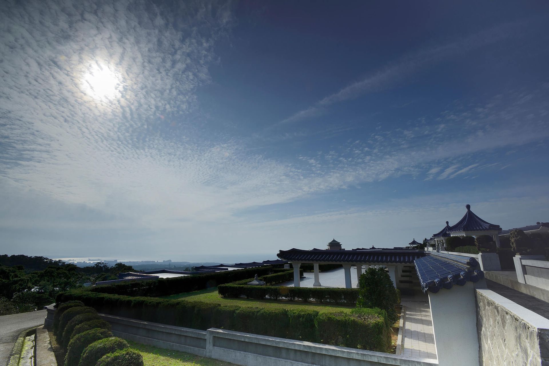 園區內環境清幽,白牆藍色琉璃屋頂建築,石雕藝術林立,佛像雍容大度慈悲莊嚴。